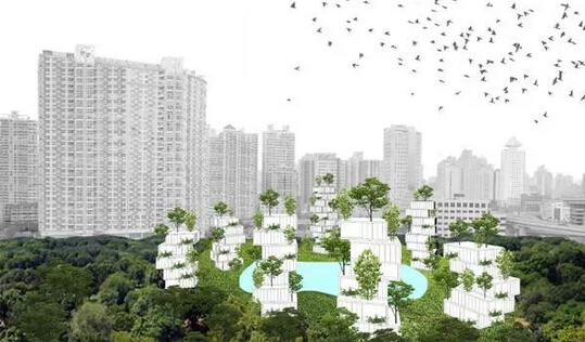 在人口高度集聚,人氣向心區(qū)域,但城市現(xiàn)代化發(fā)展延遲的中國城市中心區(qū)域,將新的高密度垂直社區(qū)和垂直森林,置換原有舊區(qū),從而迅速增加地塊價值,增加密度吸引人氣,同時打造未來綠色城市的先鋒旗幟。