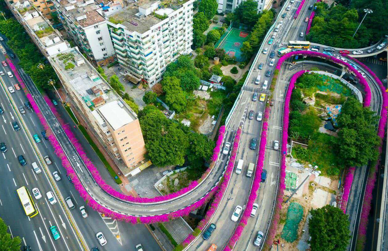 根據(jù)地域氣候等不同因素,選擇合適的植物進行高架橋垂直綠化,不僅提高了城市面貌,同時增加了城市綠化覆蓋率以及緩解了城市熱島效應(yīng),提高了城市的人居環(huán)境。